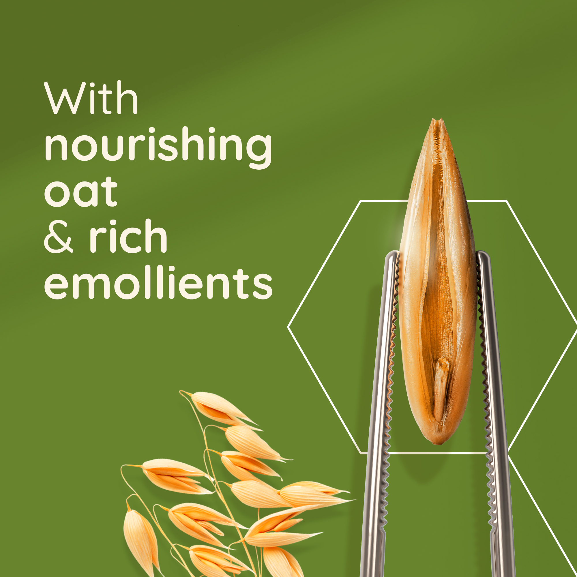With nourishing oat: This lotion is formulated with nourishing oats and rich emollients.